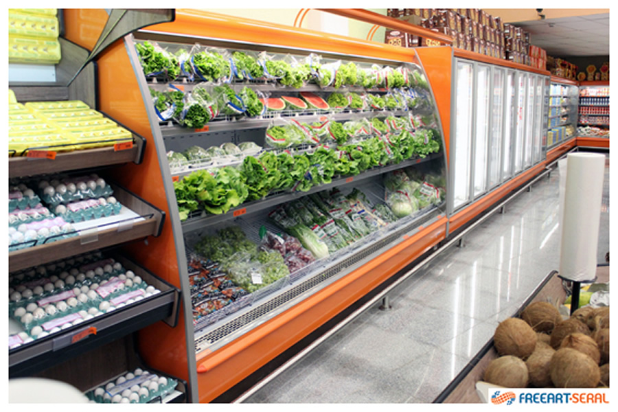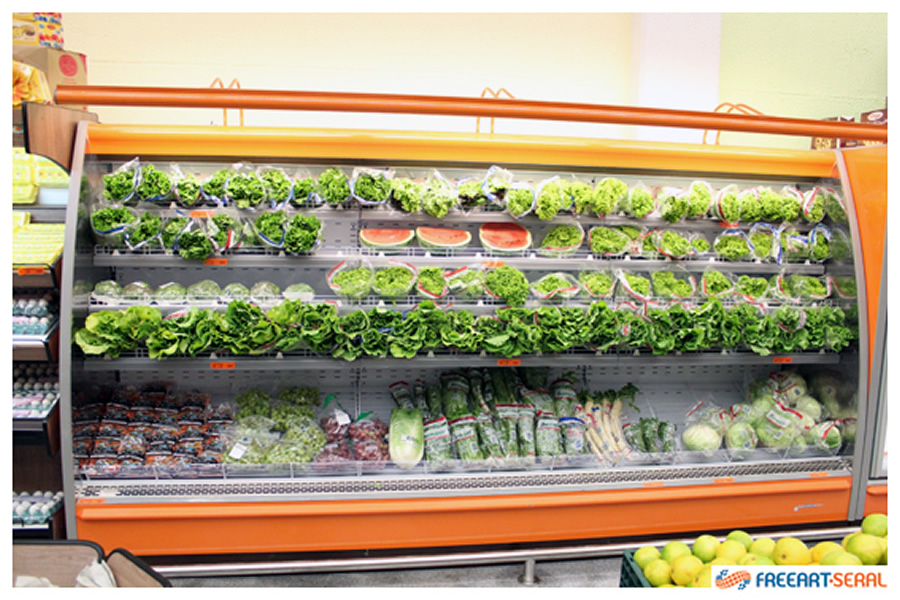 Expositor refrigerado destinado a exposição de frutas, legumes e verduras. |