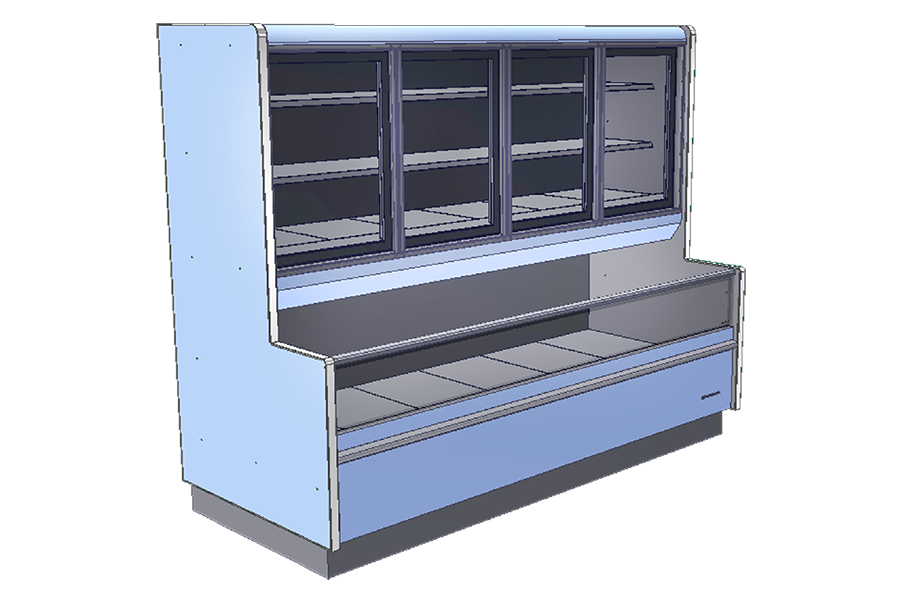 Expositor refrigerado destinado a exposição de produtos congelados. |